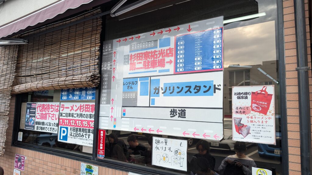 お店の目の前にも10台くらい止められる駐車場はあるのですが、こちらは行列のおかげで狭くて