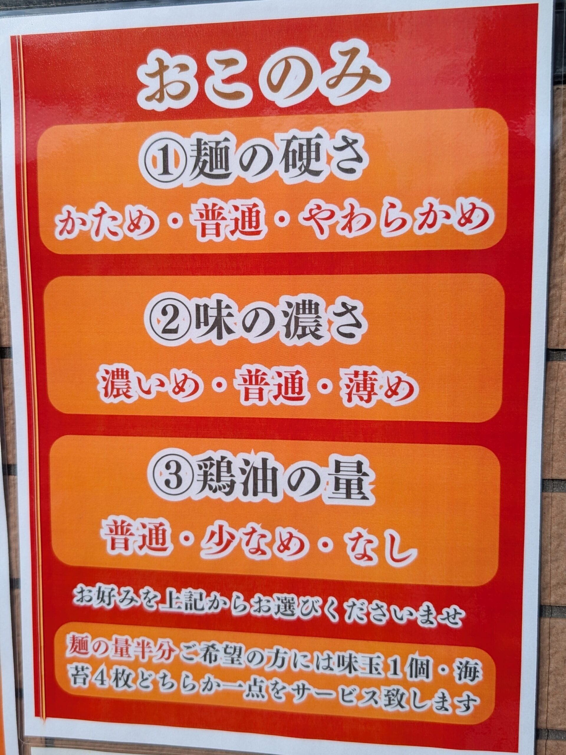 通常、家系の場合は油の量が選べるのですが今回は鶏油不足とのことの多めは選べないようです。