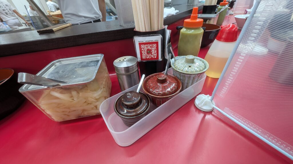 さて、ラーメンが来るまで卓上の調味調チェックと行きましょう。