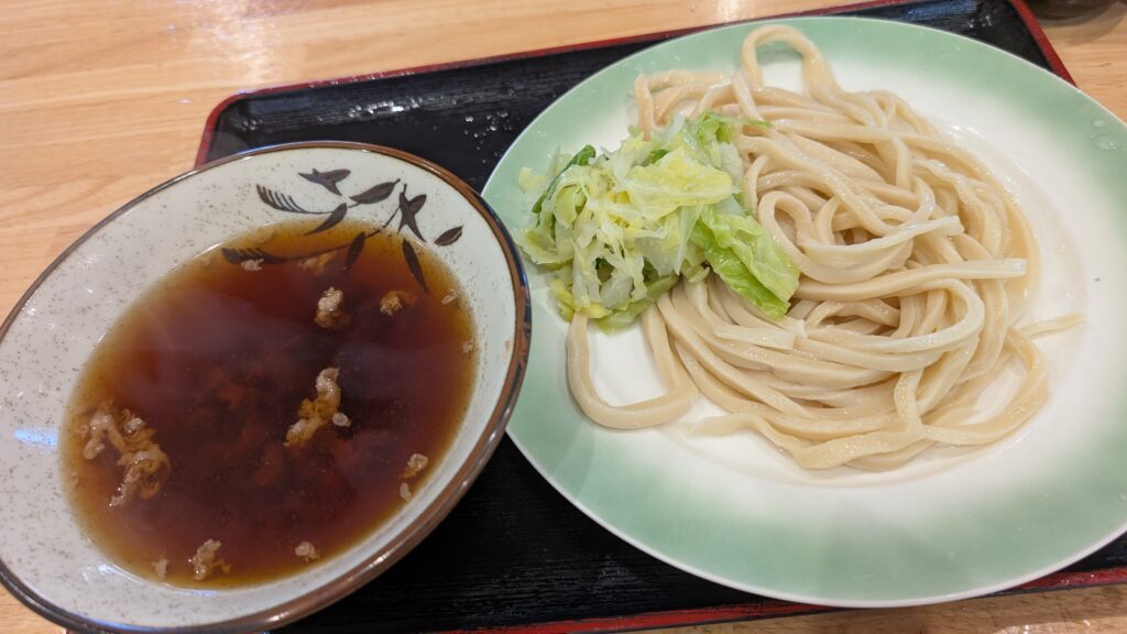 そして! そして! 着丼です! 今回は「つけうどん」を頼みました。